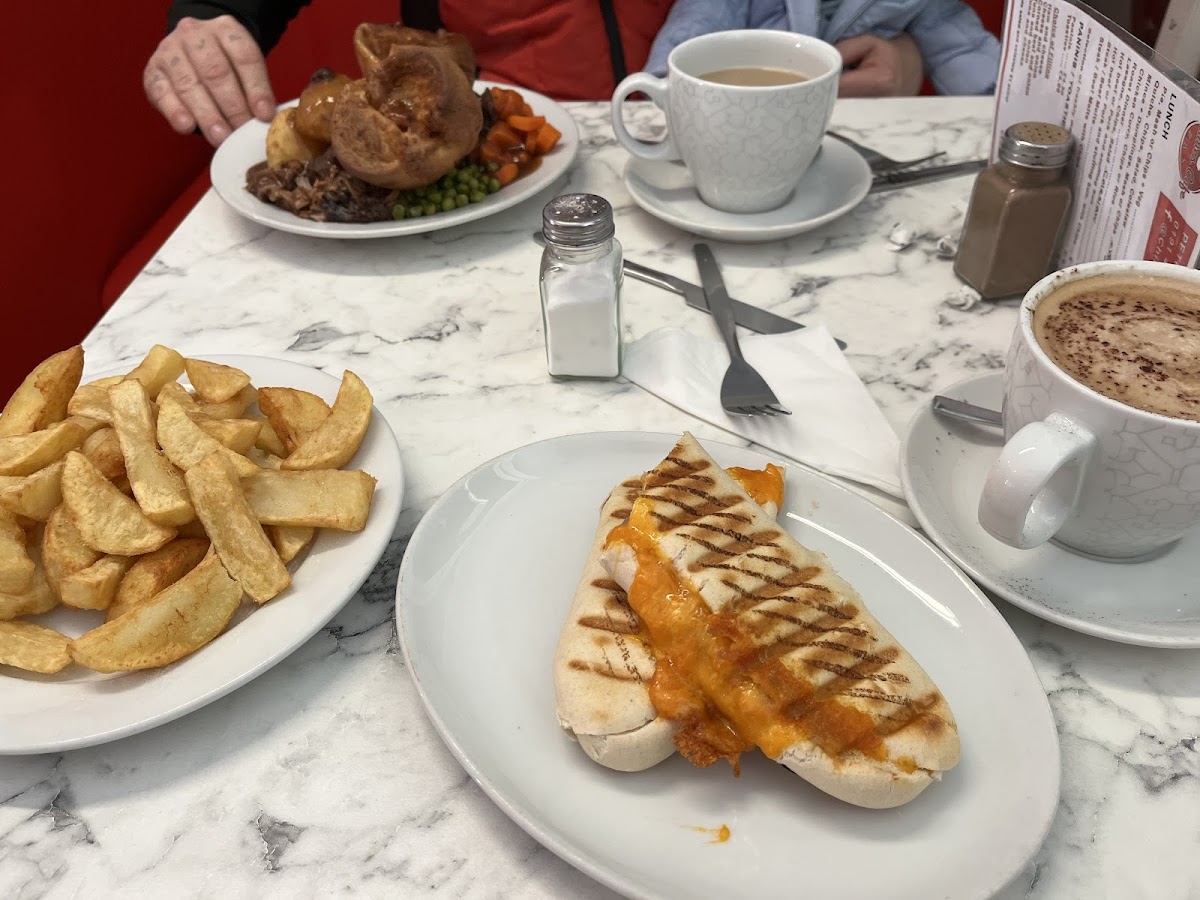 Paninis and Toasties: Available as hot sandwiches, with paninis priced at £4.50 and toasties at £4.00, providing convenient options for a quick bite.